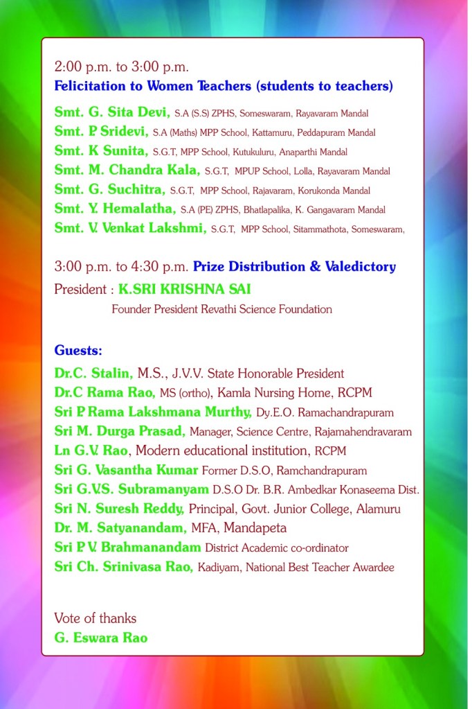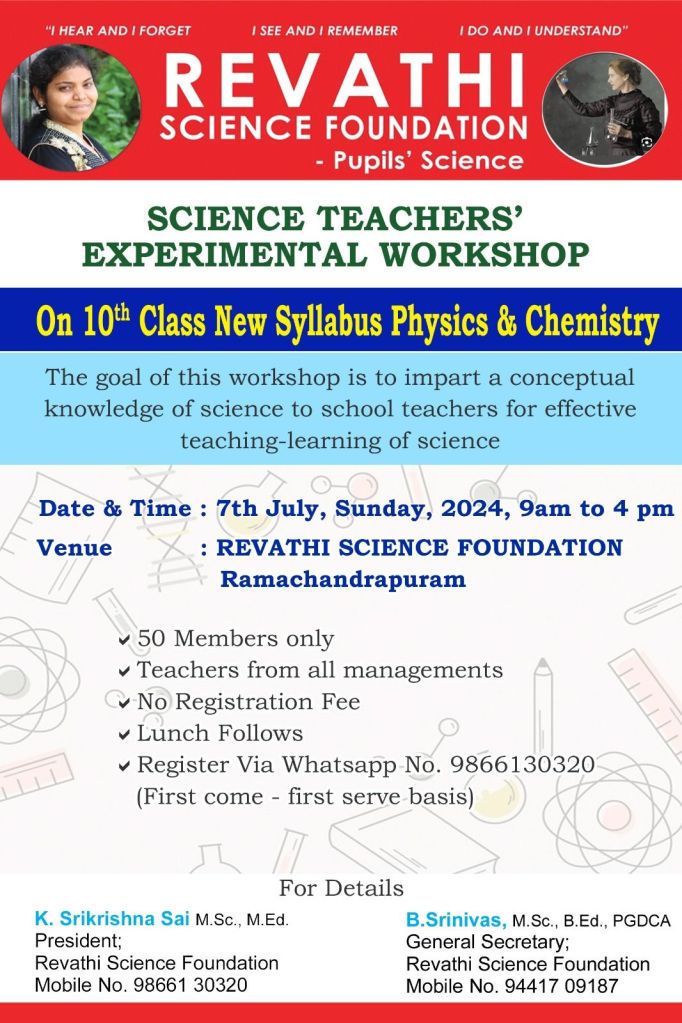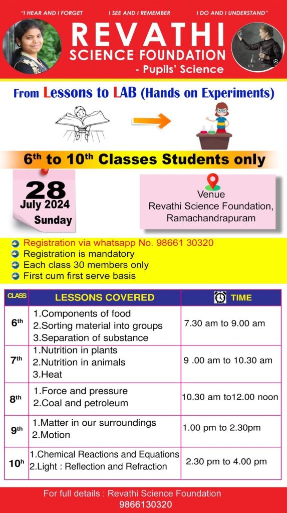 Revathi Science Foundation is a voluntary science organization, that supports, encourages and enhances the scientific concepts among the students with hands on experiments and activities since 2018.